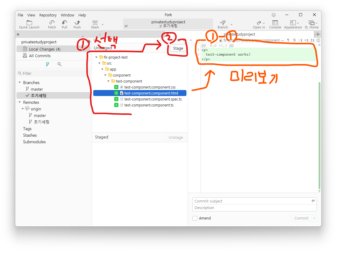 - 소스트리와 사용법이 거의 동일합니다. 그러면 소스트리 쓰면되는데 굳이? 싶지만,